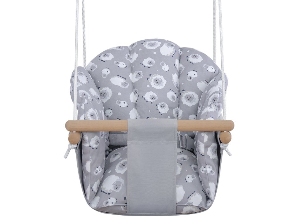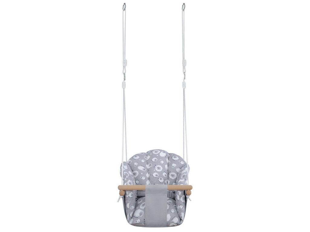 Komfort, bezpečí, zábava... každý přece ví co spokojená miminka potřebují! Tato dětská houpačka nabízí nejen spousty hodin legrace ale i aktivní odpočinek. Konstrukce z bukového dřeva a sedátko ze 100% bavlny zajišťují plné pohodlí a bezpečnost při houpání. Lana se 2 karabinami jsou výškově nastavitelná (až 180 cm). Díky tlumeným barvám a jednoduchému designu je houpačka také brilantním doplňkem do pokojíku! Hlavní vlastnosti: nosnost 60 kgvýškově nastavitelné lano (max. 180 cm)vyrobeno ze 100% bavlnyroztomilý design s ovečkamiprovazy zakončeny bezpečnostní pojistkouDoplňkové parametry
