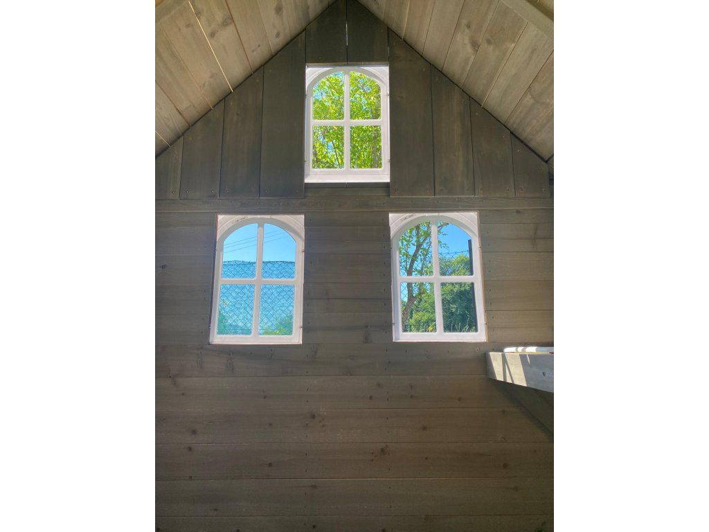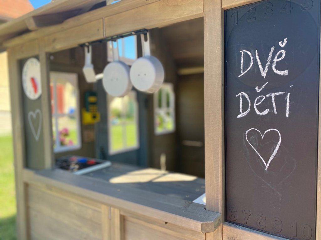 V tomhle rozkošném domečku se děti budou cítit jako v pohádce. Sněhově bílá okýnka jim dávají přehled o okolí, zatímco kuchyňka vybízí k vaření, servírování i sdílení dobrot s kamarády.