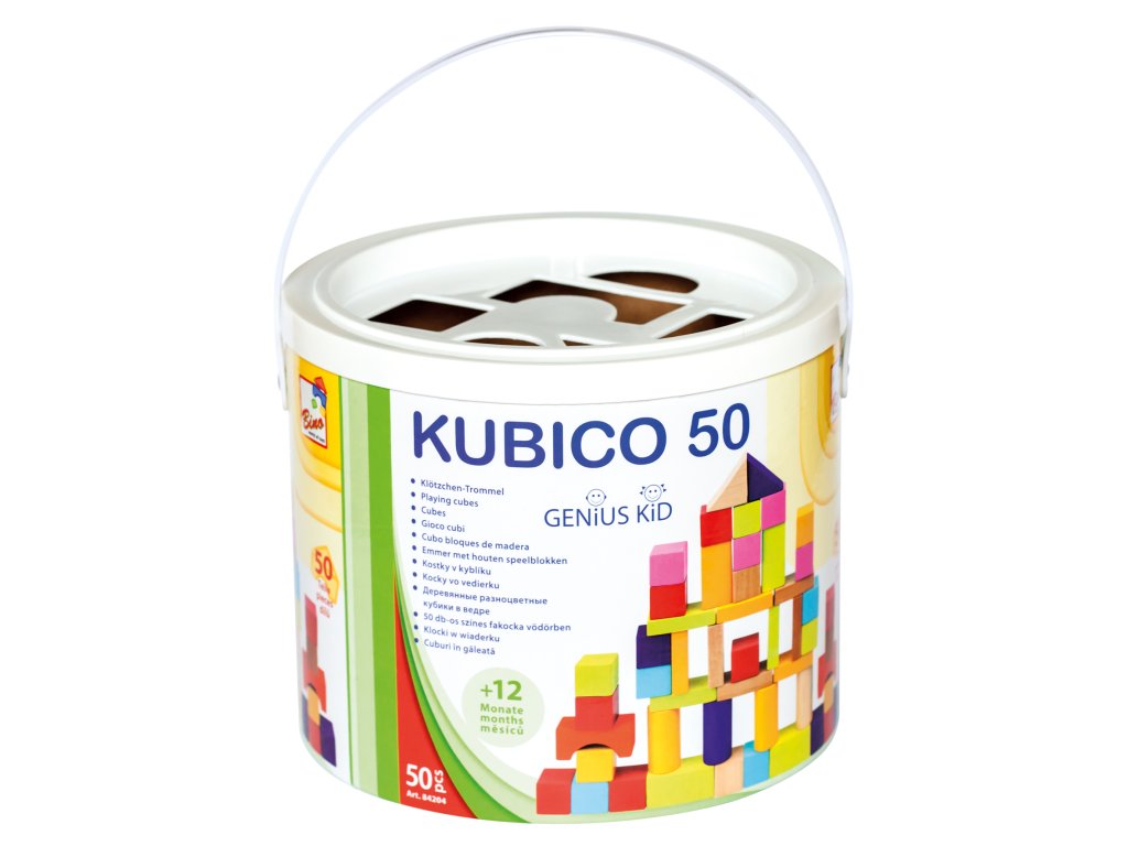 Kostky jasných atraktivních barev a různých tvarů v praktickém kyblíku z kartonu. Víko kyblíku promění balení v hravou vkládačku, může tak dále rozvíjet rozpoznávání tvarů a jemnou motoriku. Hlavní vlastnosti:vkládačka s 50 kostkamipraktické baleníDoplňkové parametry