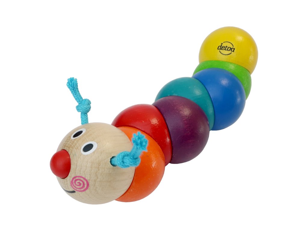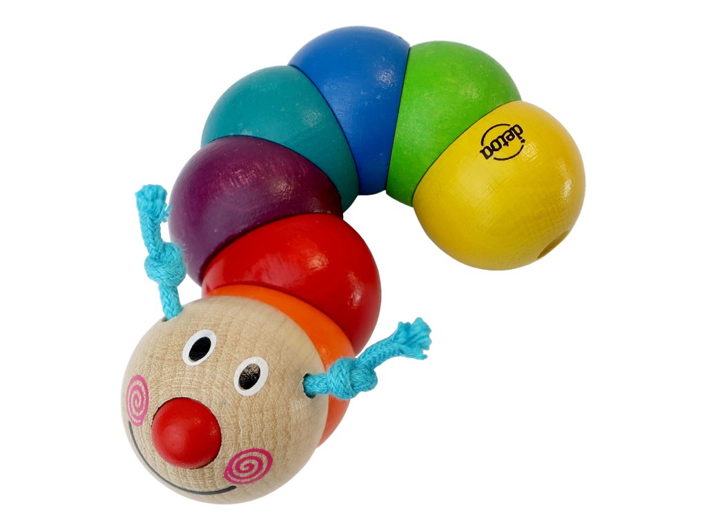 Hračka z barevných dřevěných perlí navlečených na gumě. Hlavní vlastnosti: k procvičování jemné motoriky rukou dětí již od 6 měsícůvýrobek je zdravotně nezávadnýdřevěná hračka splňuje všechny normy EU pro bezpečnost hračekdélka housenky je 13 cm a je připevněna na papírové kartěDoplňkové parametry