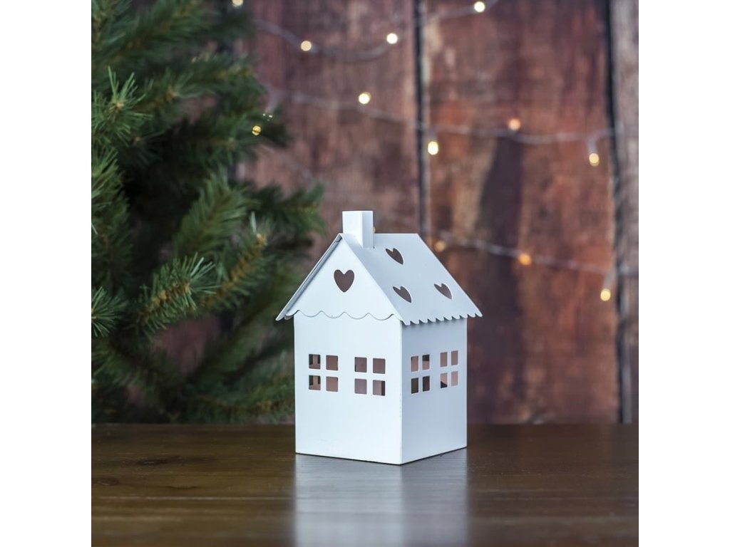 Krásná kovová lucerna se srdíčky. Rozměry: 10 x 9,5 x 16 cm. Materiál: kov. Barva: bílá. Upozornění: Nenechávejte zapálené svíčky bez dozoru.Doplňkové parametry
