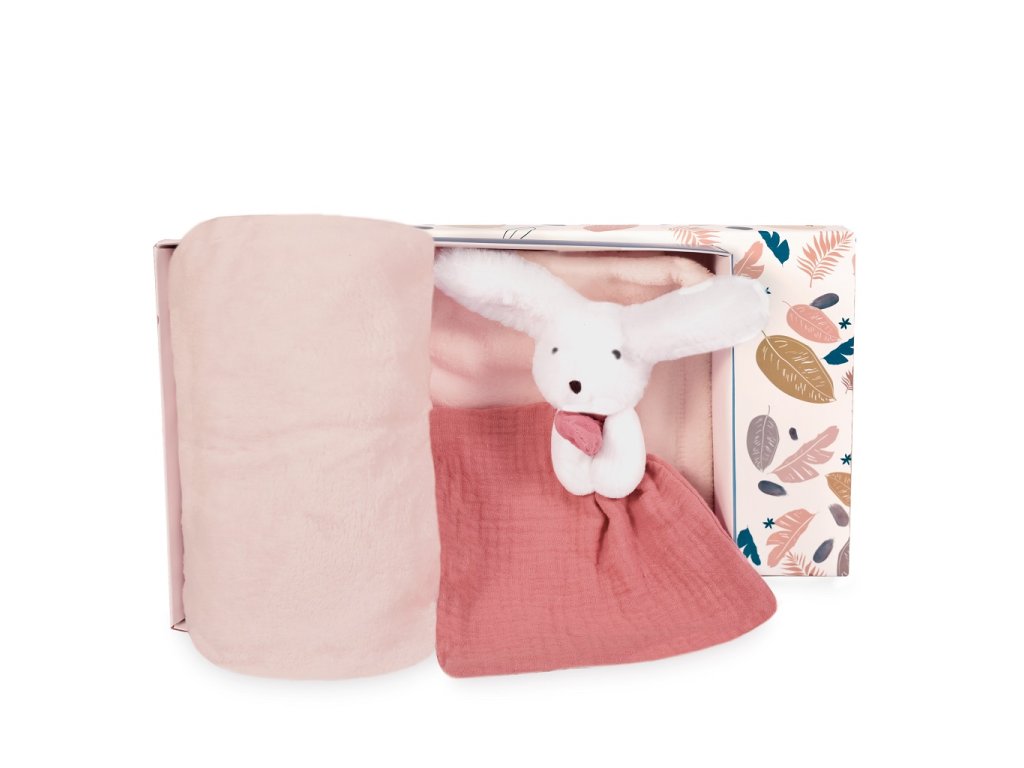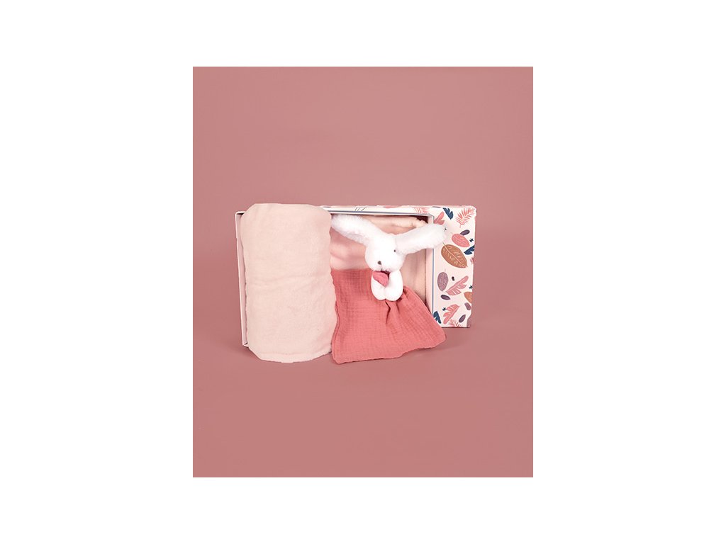 Doudou Dárková sada šťastný králíček pléd a růžový muchláček