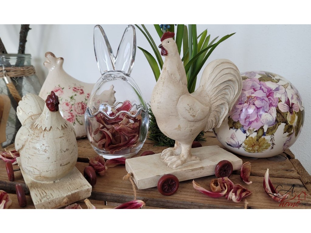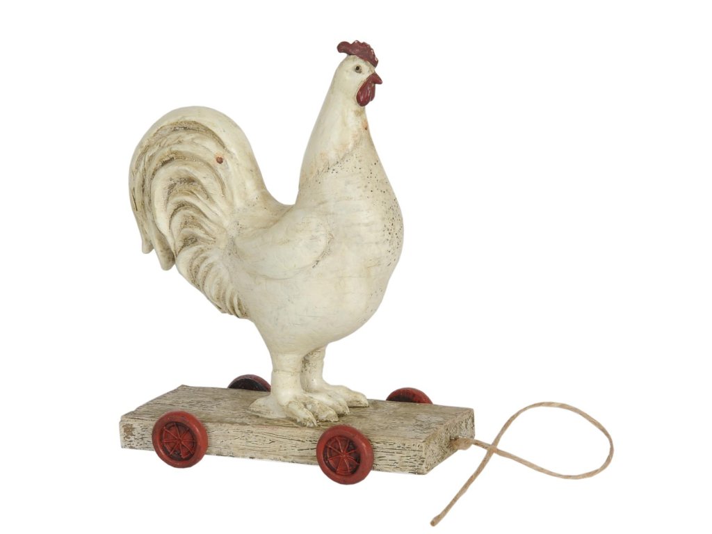 Kohoutek na kolečkách jako za starých časů. Bude milou společností v kuchyni nebo kdekoliv v bytě, kam si ho postavíte. Dekorace vyrobena z polyresinu a její vzhled je ve vintage stylu doplněný odřeninami, jako by již sloužila několik let.