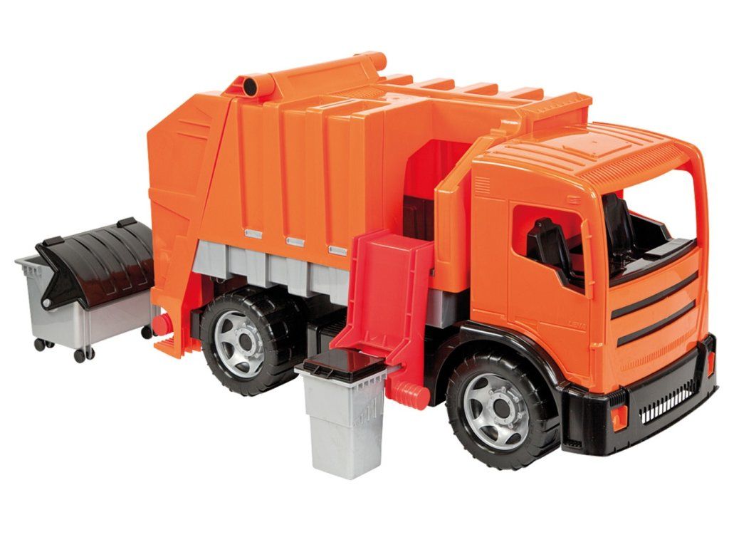 Plně multifunkční popelářské auto s odnímatelnou popelnicí a kontejnerem na kolečkách. Vyroben z kvalitního plastu. Lze použít jako odrážedlo o statické nosnost 100kg. Hlavní vlastnosti: plně mechanicky funkční s odnímatelnou popelnicí a kontejnerem vysoce kvalitní plast