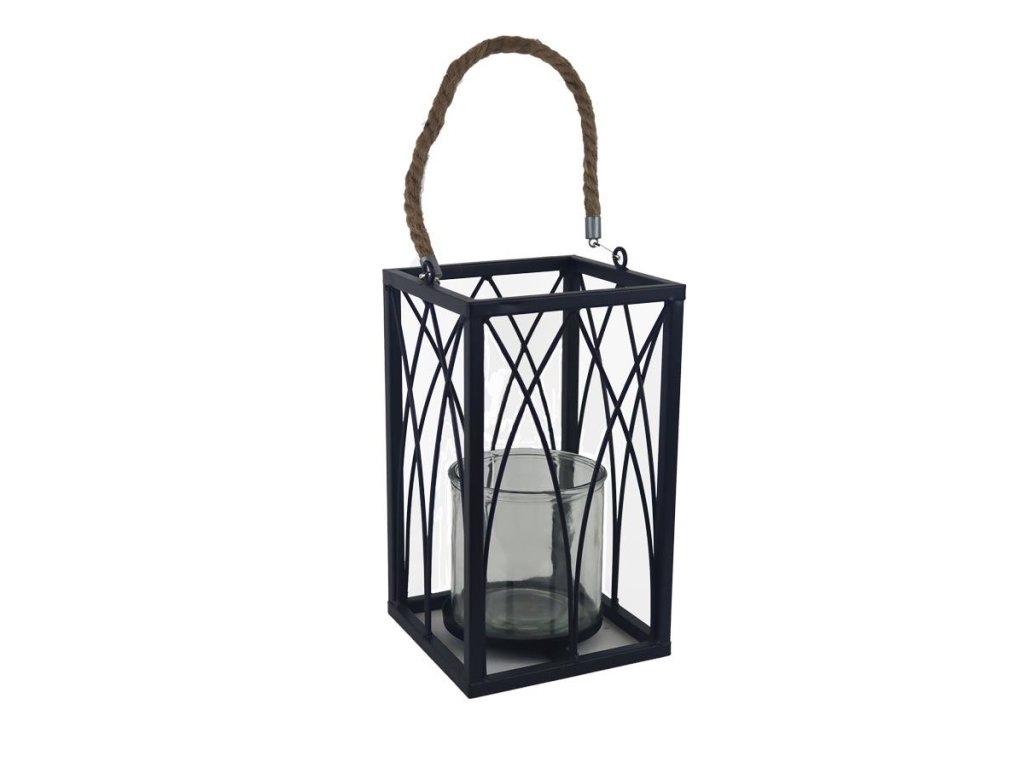 Dekorační kovová lucerna. Rozměry: 16 x 16 x 27 cm. Materiál: kov, sklo. Barva: černá. Upozornění: Nenechávejte zapálené svíčky bez dozoru.Doplňkové parametry