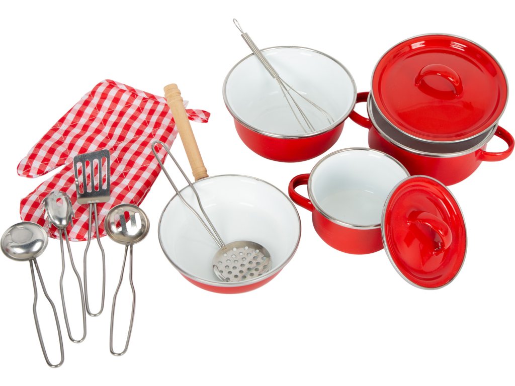 Perfektní začátečnická sada pro začínající mladé kuchaře, kteří rádi připravují lahůdky. S touto sadou v jasně červené barvě s různými kuchyňskými potřebami, jako je hrnec, pánev, chňapka, či jiné kuchyňské pomůcky, se každé dítě stane mistrem kuchařem. Ideální pro rodičovské a dětské interaktivní hry a skvělý způsob, jak podpořit kreativní a nápadité hraní. Sada obsahuje: 1 chňapka1 velká pánev s víkem1 malá pánev s víkem1 pánev, 1 pánev1 metla1 naběračka na polévku1 štěrbinová naběračka1 špachtle1 štěrbinová lžíce1 lžíce na těstoviny Hlavní vlastnosti: obsahuje 11 dílůpodporuje kreativitu a nápaditostrozvíjí sociální dovednostizlepšuje obratnost a motorikuDoplňkové parametry