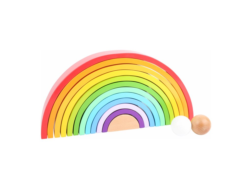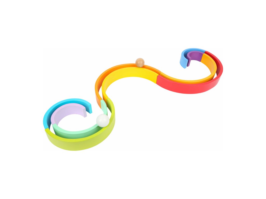 Barevná zábava zaručena! Duha včetně 2 dřevěných kuliček je vyrobena z odolného dřeva v pestrých barvách. Složená duha patří na každou polici v pokojíčku, má mnoho variací skládání a hraní. Z duhy lze vytvořit také dráhy pro kuličky, vysoká věž nebo houpačka pro plyšáky. Je všestranná a podporuje tvořivost dětí. Která barva je nejkrásnější? Hlavní vlastnosti: Rozvíjí motoriku dítětePoužívá se v MontessoriKvalitní zpracování dřevaDoplňkové parametry