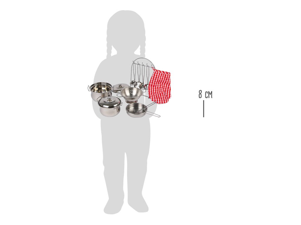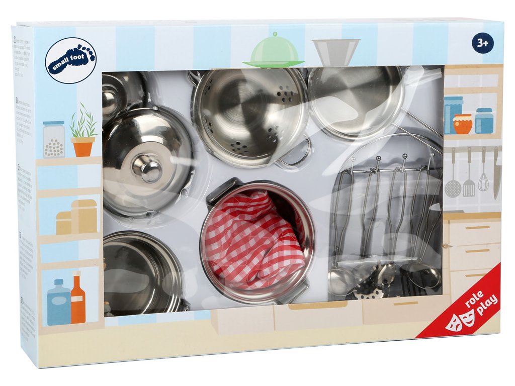 S touto sadou nádobí skládající se z různých hrnců a kuchyňského náčiní se každé malé dítě může stát špičkovým kuchařem, nebo kuchařkou. Součástí sady je chňapka a stojan s kuchyňskými pomůckami. Takže popadněte naběračku, připravte se a pusťte se do vaření. Tato sada je ideální doplněk do dětské kuchyňky. Hlavní vlastnosti: obsahuje 13 dílůpodporuje kreativitu a nápaditostrozvíjí sociální dovednostizlepšuje obratnost a motorikuDoplňkové parametry