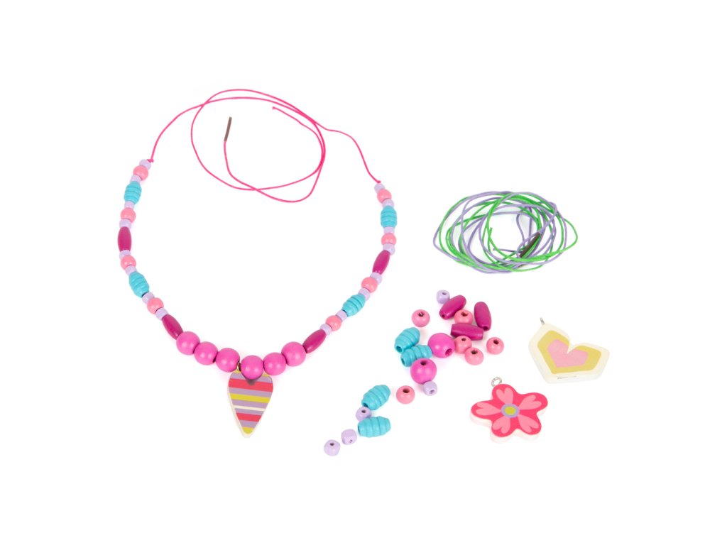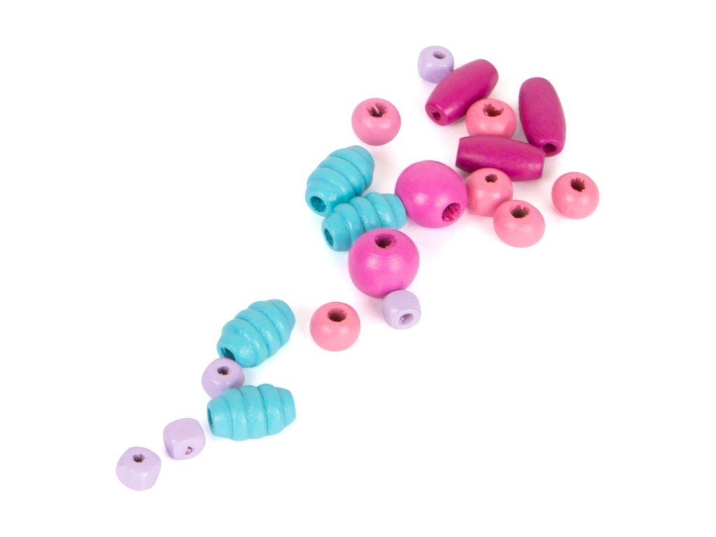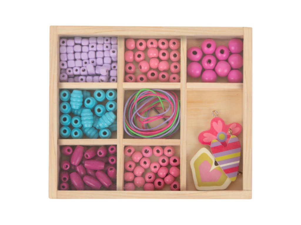 Vyrobte si své šperky s touto sadou korálků v pěti různých barvách a tvarech. Korálkový set doplňují tři přívěsky s různými motivy v hravém designu a tři barevně sladěné šňůry. Vše je uloženo v dřevěné krabici. Navlékáním korálků je podporována jemná motorika dětí. Hlavní vlastnosti: pět různých barev a tvarůpodporuje jemnou motorikuDoplňkové parametry