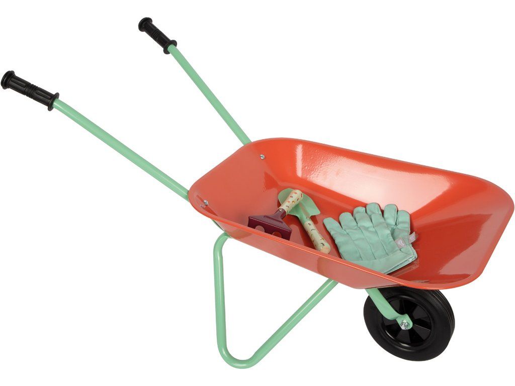Kompletní zahradní sada s kolečkem pro malé zahradníky obsahuje: