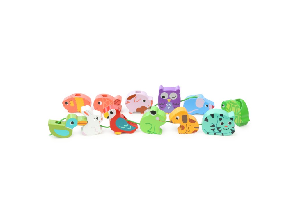 Krásná provlékačka s motivy zvířátek. V kompaktním balení najdete 12 ilustrovaných dřevěných korálků (např. kočka, myš, králík, žába), které děti mohou navlékat na textilní šňůrku. Hračka pomáhá s rozvojem jemné motoriky. Vybaveno bezpečnostními sponami. Vhodné od 18 měsíců. Hlavní vlastnosti: rozvíjí jemnou motoriku12 korálkůvyrobeno ekologicky, šetrně k životnímu prostředíDoplňkové parametry